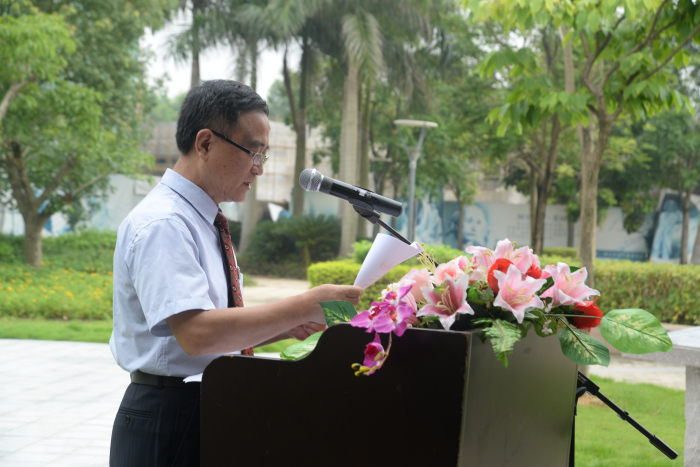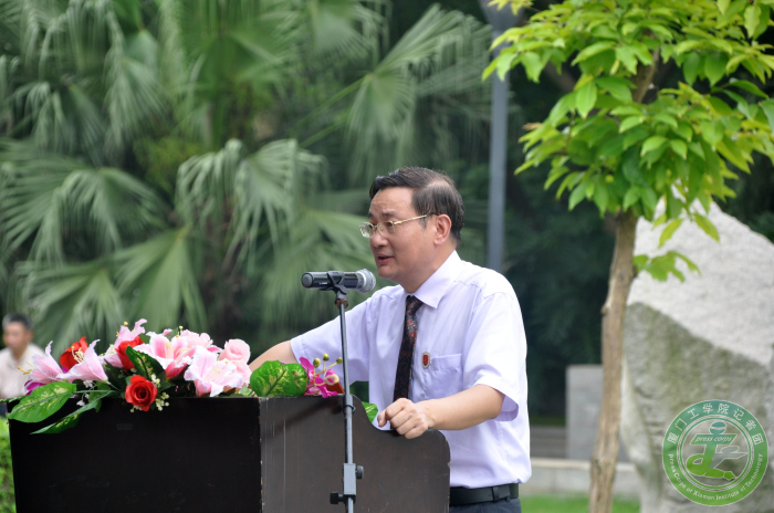 校长蔡远利教授在剪彩仪式前上台致辞。他引领大家一起回忆了这一年来学校在文、体、艺术各方面参赛所获得的成绩,他表示这些成绩的取得离不开李德文董事长对学校的殷切关怀和全体教职员工、学生们的共同努力。他说到大学四年的时光珍贵而难忘,毕业生今后还有很长的路要走,希望同学们毕业后在工作岗位上还能继续秉承9499威尼斯手机版明志、博学、修身、力行的校训,敢闯敢拼,奉献社会,回报母校。最后,蔡校长表示校友是一生中最宝贵的财富,校友园是联系毕业生和母校情感回忆的纽带,他将会和全体教职员工,在校生一起守护这个毕业生的精神家园,希望全体毕业生今后还能常回母校看看。