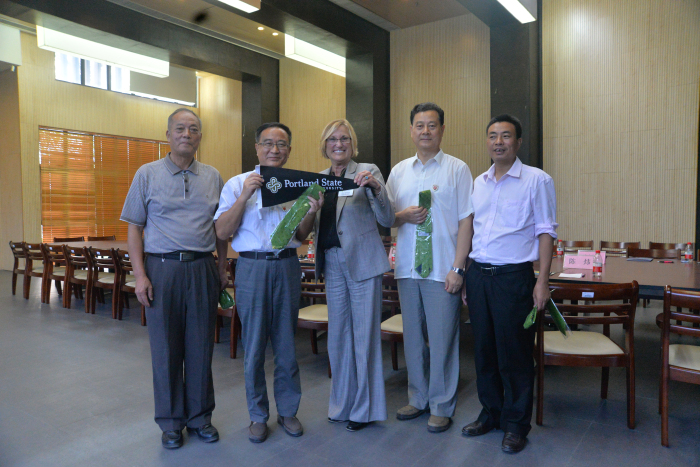 波特兰州立大学副校长 Cindy L. SKaruppa对我校的热烈欢迎表示了感谢,她表示参观完校园后感到工学院虽然年轻但却有美好的发展前景。她介绍到波特兰州立大学是一所公立研究型大学,位于俄勒冈州的港口城市波特兰市、学校拥有三万多名在校生,其中本科生两万多名,其余为研究生和博士生。在国际化方面,波特兰州立大学拥有来自一百多个国家的2000多名国际生,位列俄勒冈州国际化排名第一的大学,学校设有国际学生服务办公室,为国际生提供全面周道的服务;在学科专业方面,学校拥有209个专业学科,其中工程,商学,可持续发展和城市规划及自然科学专业为优势专业;在师资建设方面,学校拥有专职教师五百余人,兼职教师三百余人,皆取得博士学位;在国际合作方面,学校采取3+2,3+1+1等多种合作方式,模式相对灵活。她表示通过对我院的参观了解,非常希望和我校发展专业课程互换交流,签署合作协议。(宣传办讯文/黄晨晖 图/刘圻 编辑/姜亚男)