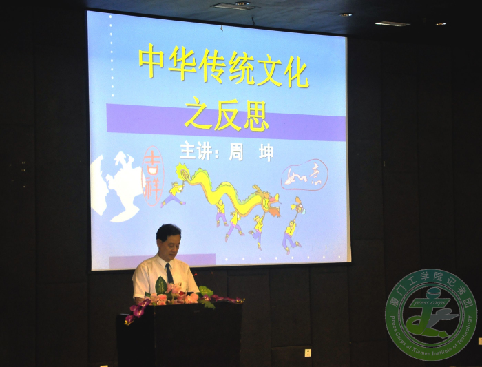 会议上周坤先生为我们讲述了什么是文化、中国传统文化的内容、中国传统文化所受到的冲击已以及他对中国传统文化的反思。演讲中周先生由儒学、佛学、道教中华传统文化三大组成部分的精髓思想作为切入点,进而引申到饮食文化、圈子文化、羞耻文化、天理文化、模糊文化、逾矩文化、无信仰文化等各个中华传统统文化领域进行深入解读,提出反思。最后周先生表示中华民族有五千年的传统文化,传统文化对于我们有着深远的影响,我们应该理性地对待中华传统文化,去其糟粕、存其精华。