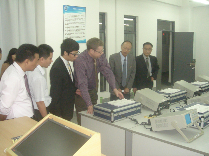 交流团一行还参观了明德教学楼实验室,实验中心耿中行主任为交流团做了详细的讲解。(文/陈慧琳 图/招生就业处)