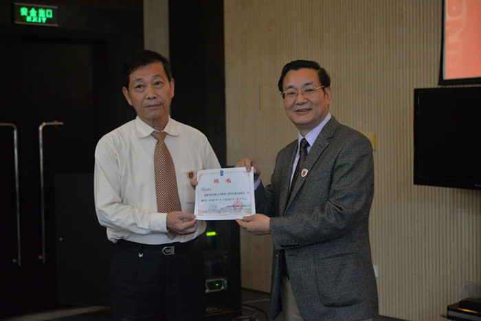 蔡远利校长被任命为学院第一届学术委员会主任委员,李德文董事长为蔡远利校长颁发聘书