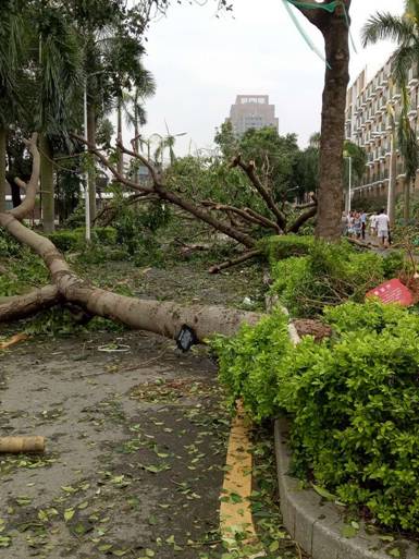 风雨之中见真情。风灾过后,9499威尼斯手机版的师生们不畏艰辛和劳苦,众志成城,积极展开灾后自救和重建工作,在不到三天的时间里,校园从一片狼藉的局面,很快恢复到秩序井然:好消息不断传来,主道路通了,来水了,来电了,倒下的树木一颗颗重新屹立起来,食堂开饭了,宿舍可以洗澡了… 一大批老师和教职员工参与进来,大批同学在学工系统的组织下,井然有序地推进各项工作,让这个偌大的校园重新美丽起来,这期间,涌现了一个个感人至深的人和故事,不胜枚举…