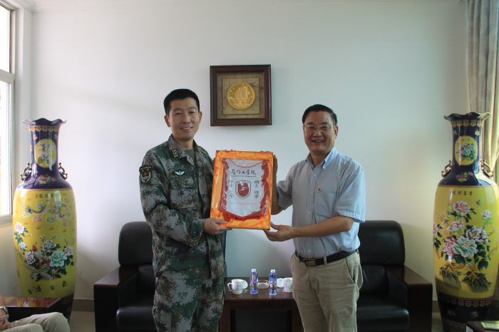 2017年6月20日,校长蔡远利教授、副校长陈少牧教授、学工处汤伟明处长及综合科吴江南科长等一行人,专程访问军改后新成立的31608部队,旅副政委等一行人接待我校访问团,双方就军学共建双拥育人工作展开会谈。