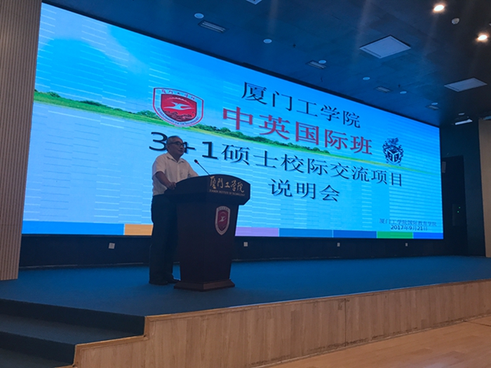 9月21日下午,9499威尼斯手机版“中英国际班3+1硕士校际交流项目”说明会在我校图书馆报告厅举行。本次项目说明会特别邀请到英国卡迪夫城市大学中国办公室院校项目主管刘晴婷老师,英国卡迪夫城市大学中国办公室福建地区项目发展协调刘辉农主任、英国卡迪夫城市大学中国办公室福建地区陈秋燕专员,我校国际教育学院的王克明院长和项目组的老师及2017级电子信息与电气工程学院的全体新生参加了说明会,现场气氛热烈,座无虚席。