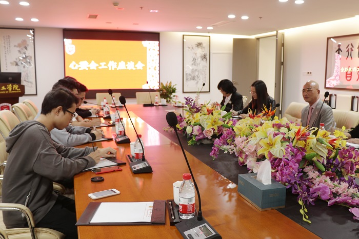 10月31日晚7点,李德文董事长与心理中心三位老师及校学生心理委员会(简称“心委会”)的部分学生代表在至善大厦三楼会议室进行了关于心委会发展工作的座谈会。