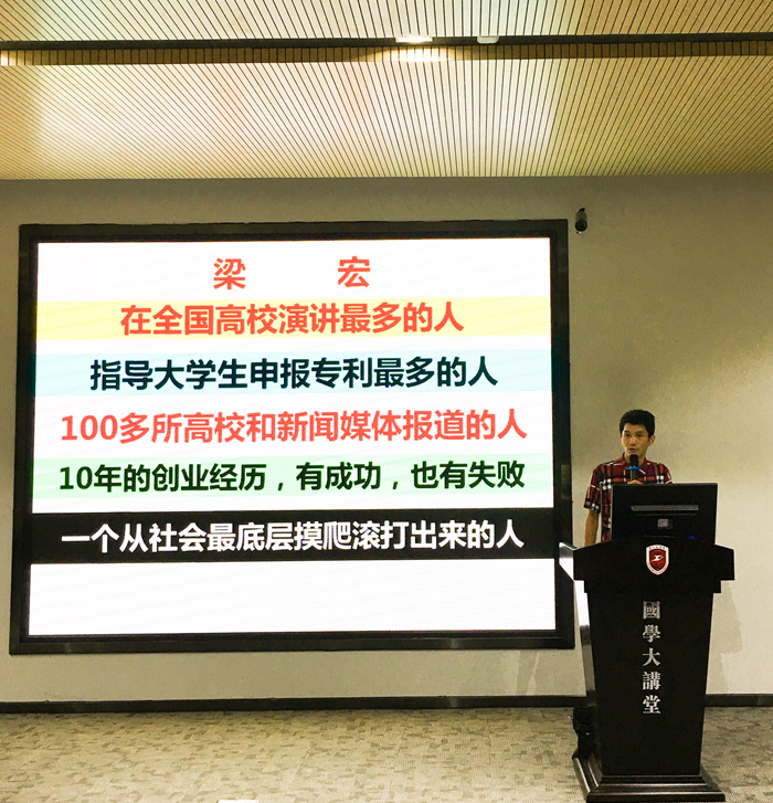 课堂上,梁宏导师有条不紊,声情并茂的为200多名有着创业理想的大学生从个方面分别讲解关于“创新创业”。第一,对于创业的认识和理解:大家需要首先考虑是要想找工作还是创业,自己是否适合创业,创业能成功吗?资金从哪里来?如果创业失败了怎么办?创业导师提出了创业前需要考虑的问题:大家是否对创业感兴趣,是否对创业保持永久的热情,创业项目是否是自己喜欢和擅长,自己在这个领域是否有准备?如果失败了能接受吗?再者提出了第三点,创业的核心要素:要从自己的兴趣特长和顾客的需要出发。并告诉学生寻找创业项目的种方法:市场考察法、巡街法、异地领悟法、人际关系法、总而言之,生活处处皆是商机,需要大家把握机会,利用机会技能和资源。在寻找创业项目的同时,找到一个志同道合的合作伙伴,是你开启创业之路的必要之道。创业导师梁宏一再强调创业合伙人的重要性,并用小视频的方式一再提醒学生避免中国式合伙!合作一定要签订合同。同时要发挥工匠精神,死磕合伙人与投资人,做到能源互补,资源互补。导师最后说了第点:要用长远的眼光看待时代的创业发展,一份完美的企业计划书很重要。