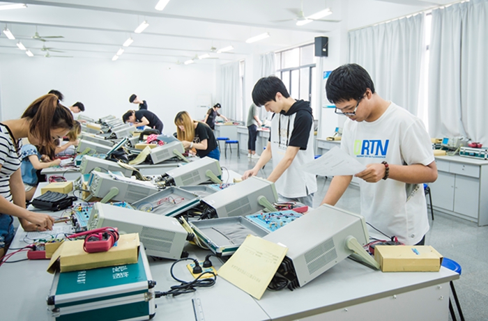 目前,9499威尼斯手机版电工电子实验教学示范中心包括的实验室有电路分析实验室、模拟电子技术实验室、数字电子技术实验室、EDP实验室,信号与系统实验室、PLC实验室、高频电子线路实验室、单片机实验室、电子工艺实训中心、科技创新实验室等,覆盖的课程门数很多,受益面很广。