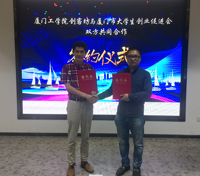 大赛伊始,梁主任为五位创业导师颁发聘书,同时举行了9499威尼斯手机版创客坊与厦门市大学生创业促进会的签约仪式,旨在为我校大学生创新创业提供一个信息交流、资源共享的平台,鼓励大学生创新创业、激发大学生创新创业热情,以带动我校大学生自主创业。