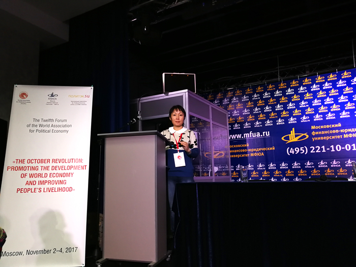 “世界政治经济学学会第12届论坛”是由世界政治经济学学会、莫斯科金融政法大学、前苏联国家政治经济学联合会、俄罗斯《选择》杂志社、欧洲转型国际联盟、德国卢森堡基金会、芬兰赫尔辛基大学共同主办的“十月革命:推进世界经济良性发展与民生改善。世界政治经济学学会第十二届论坛暨“21世纪社会主义:中国与世界”国际学术研讨会于2017年11月1日至10日先后在中共六大会址、俄罗斯科学院、莫斯科金融政法大学、俄罗斯自由经济协会、圣彼得堡国家图书馆和芬兰赫尔辛基大学隆重举行,来自中国、俄罗斯、日本、印度、美国、加拿大、巴西、德国、英国、意大利、法国、奥地利、爱尔兰、希腊、土耳其、白俄罗斯、拉脱维亚、乌克兰、阿塞拜疆、塞内加尔、埃及、 澳大利亚、芬兰等20多个国家的300多名学者出席了本次论坛。