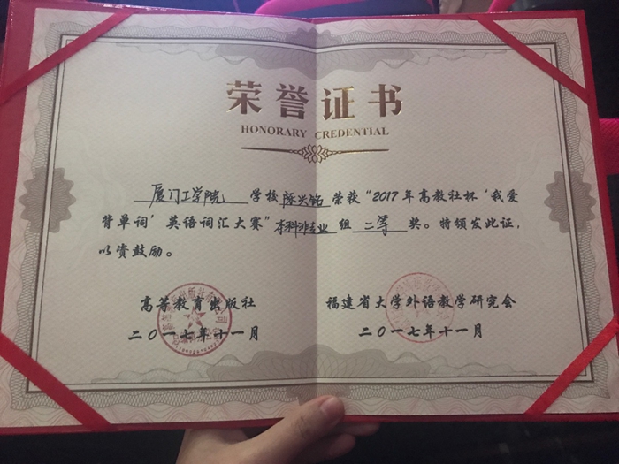 2017年“高教社杯”英语词汇大赛厦工学子再创佳绩