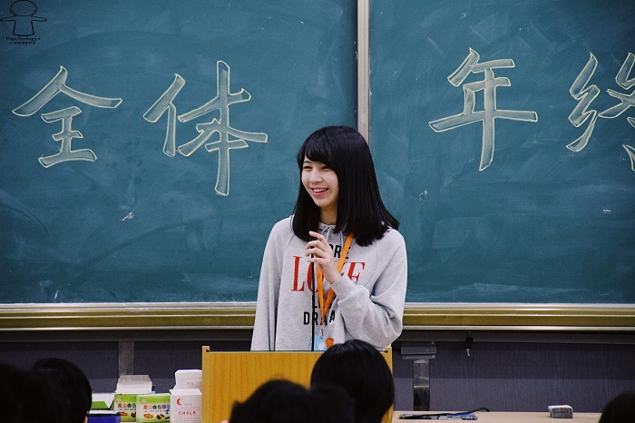 大会第二项:指导老师总结工作。心理中心老师蔡丽煌老师上台表扬了在心委各大活动中同学们的精彩表现与艰苦付出,她指出:无数成就的获得,都离不开每一位心委人的努力,也希望大家有开拓的精神,毋忘初心,砥砺前行,争取在下一年度的活动中更创佳绩。