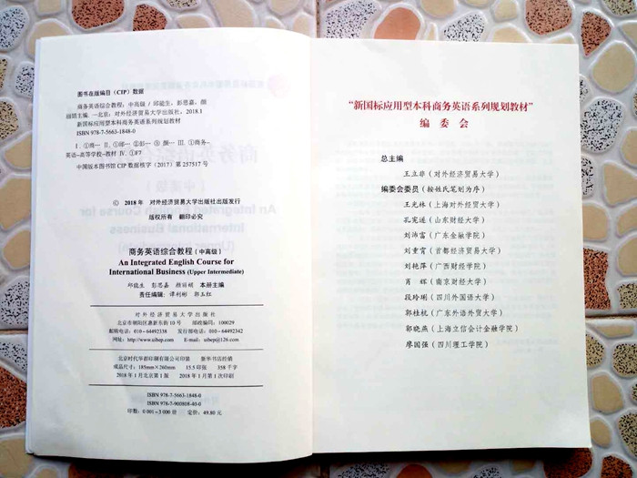 我校三位教师负责编写的是本套教材的中高级篇,学习对象为商务英语专业及英语专业二年级的学生,或商务管理、经贸类专业学生。《商务英语综合教程》(中高级)的编写思路源于前沿的“商务英语”精品课程教学与教学实践,以商务活动开展的流程及所需商务技能设计教学任务与练习,目的是培养学生的商务英语应用能力、商务专业实践能力和综合职业能力;以案例分析与综合性任务培养学生的批判性思维能力、自主学习能力、团队合作能力与创新创业能力。本系列教材的特色体现在六个方面:1. 应用性(以就业为导向: 培养创新创业能力);2. 前沿性(最新最炫的资讯: 跟上时代的步伐);3. 跨学科(题材的多样性: 积累相关领域的商务知识);4. 国际化 (编写模式国际化:培养全球化的视野);5. 合作学习(项目式的任务编排:培养团队合作能力);6. 问题意识(以问题为导向的任务编排:培养各项商务技能)。