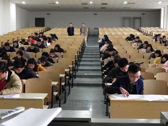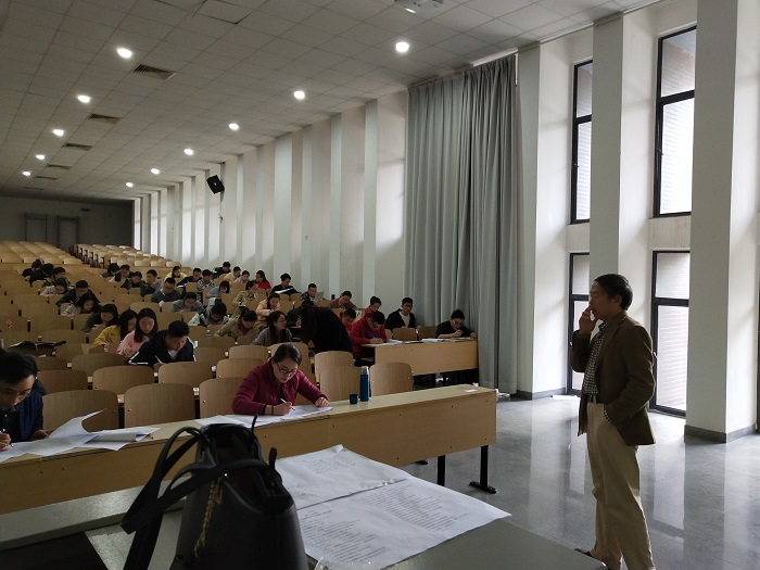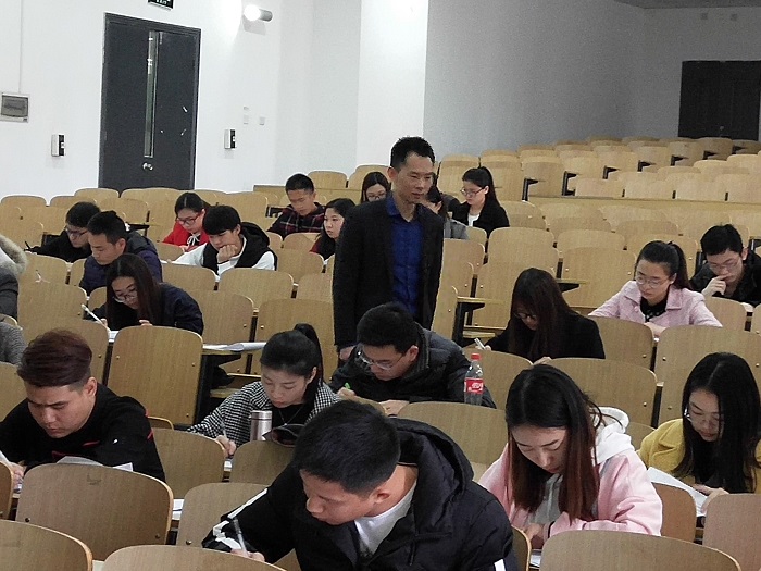 考前学生处处长汤伟明就考场纪律、考试要求等做了相关说明。心理教育与咨询中心的三位老师负责监考,学生处汤伟明处长、教务处游荣义处长负责巡考。