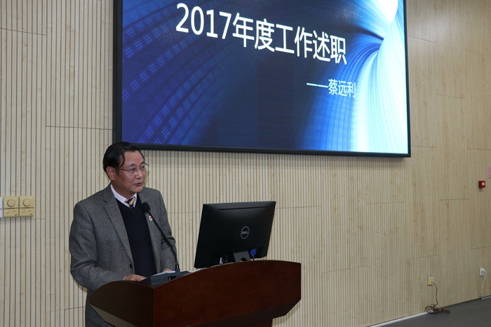 会上,蔡校长主要从学校干部队伍建设、组织结构优化、校务运行规范化与正规化、规章制度的建设与完善、师资队伍建设、教学科研工作、校园安全工作、对外交流与合作、招生就业工作、宣传与品牌建设工作等十个方面对2017年的整体工作给予了充分肯定。