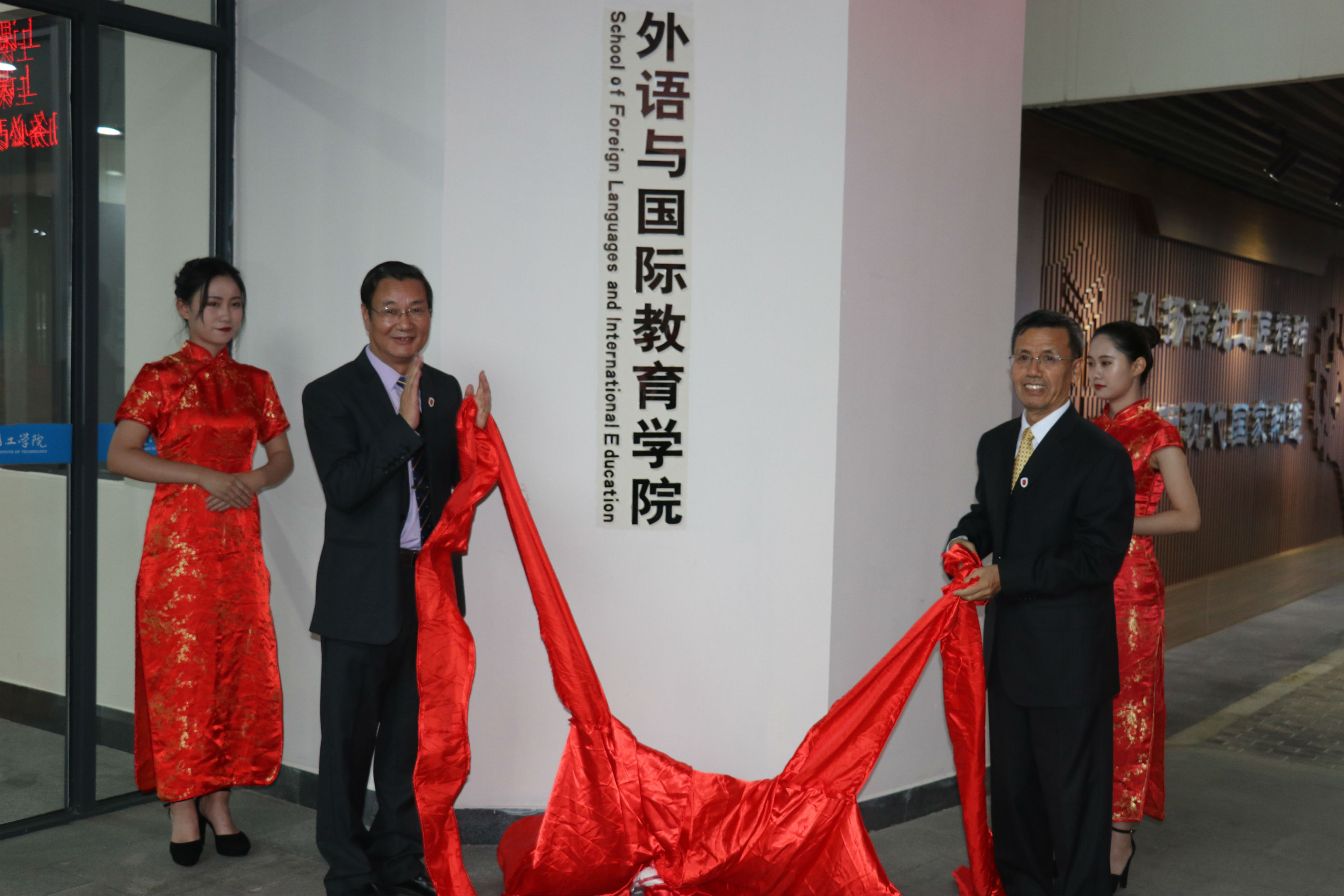 校长蔡远利、副校长苏涵为外语与国际教育学院揭牌