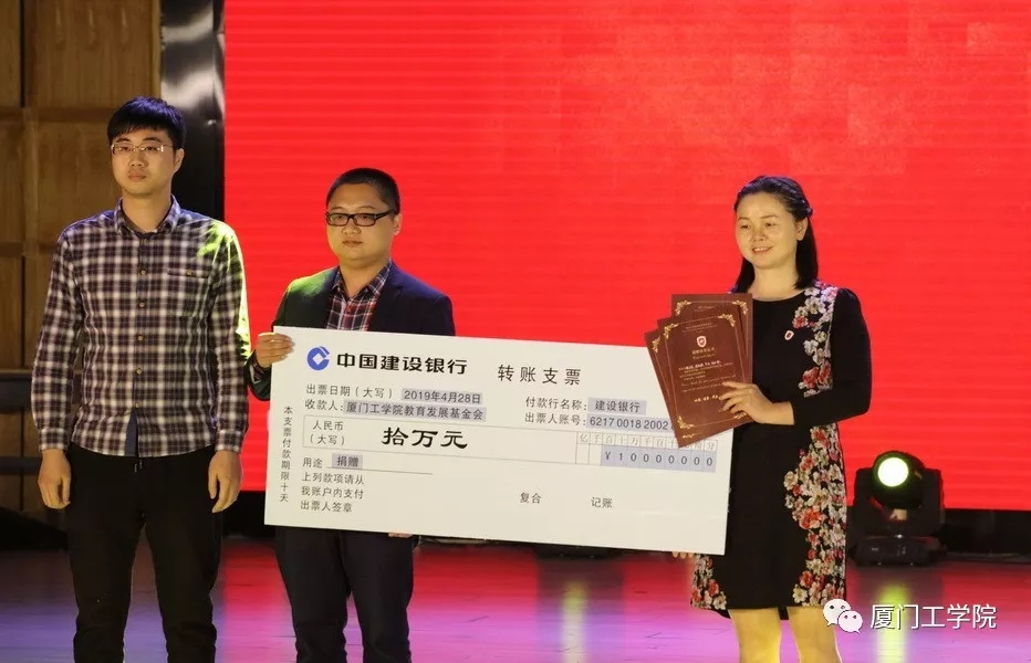 骆少东、李松庭、李力、林必顺四名校友向学校基金会捐赠十万元,用于奖励品学兼优的学生