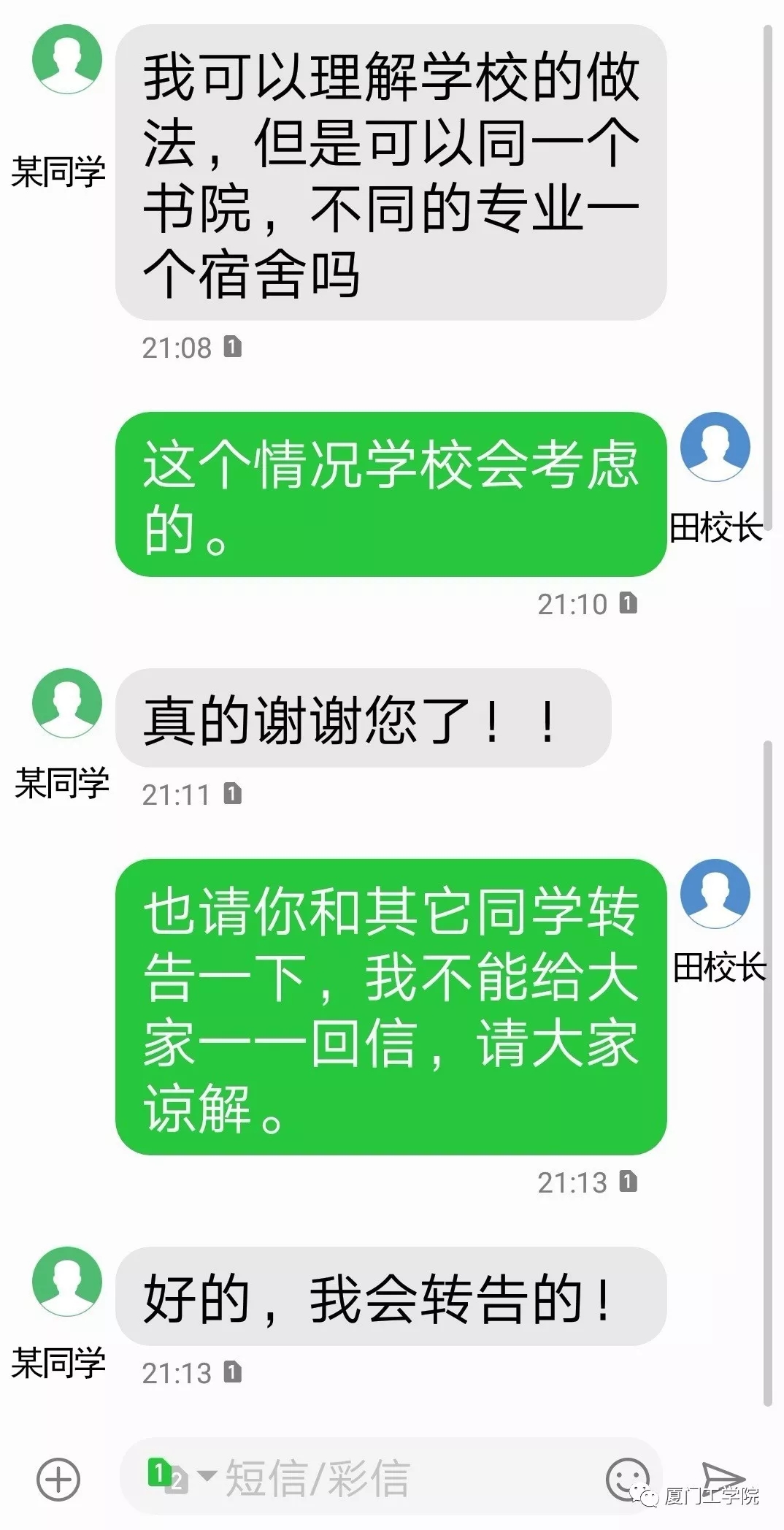 校领导们关心重视同学们的同窗情义,舍友情谊。