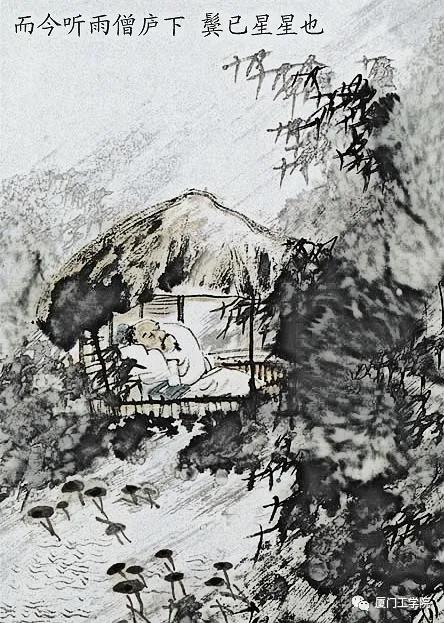 而今,独自一人在僧庐下,听细雨点点。人已暮年,两鬓已是白发苍苍,人生的悲欢离合的经历是无情的,还是让台阶前,一滴滴的小雨下到天亮吧。