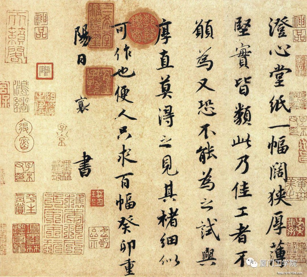 释文:澄心堂纸一幅,阔狭、厚薄、坚实皆类此,乃佳。工者不愿为, 又恐不能为之。试与厚直,莫得之?见其楮细,似可作也。便人只求百幅。癸卯重阳日,襄书。