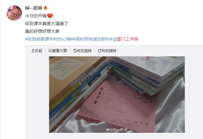停课不停学,为了确保教学效果,学校免费邮寄教材。这份爱心,学校已寄出;这份爱意,同学均收到。