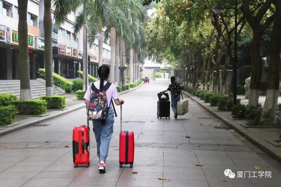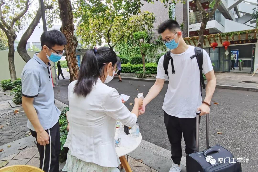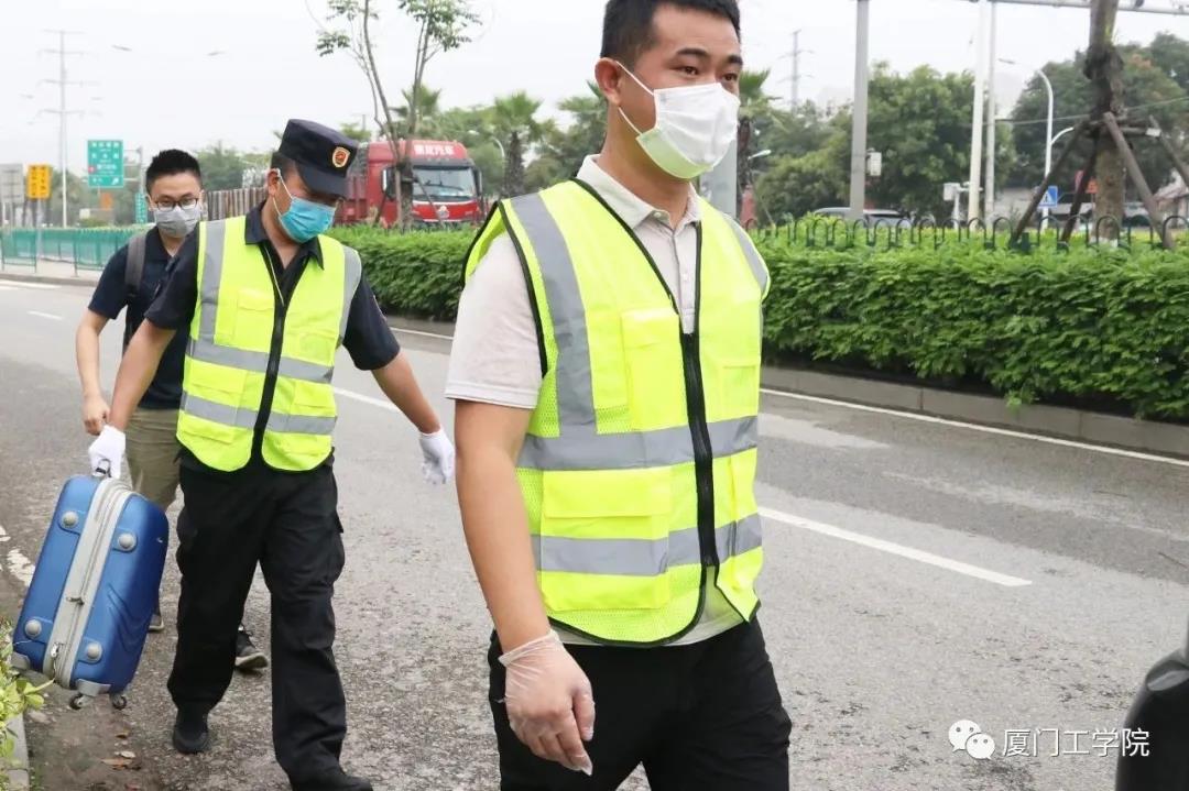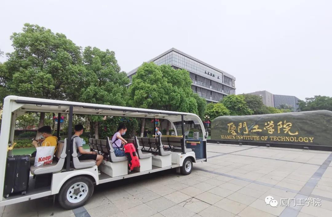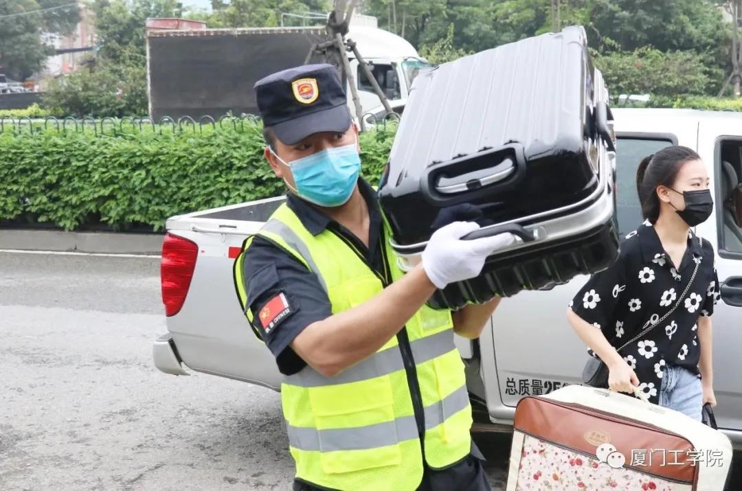 工作人员早早侯在了校门口,指挥车辆,确保交通的流畅,同时承担起协助行李较多的同学搬运行李的工作。经过测温、核验信息后进入校园,是熟悉的“厦工公交”在等候着,由它免费将返校的毕业生送回宿舍。