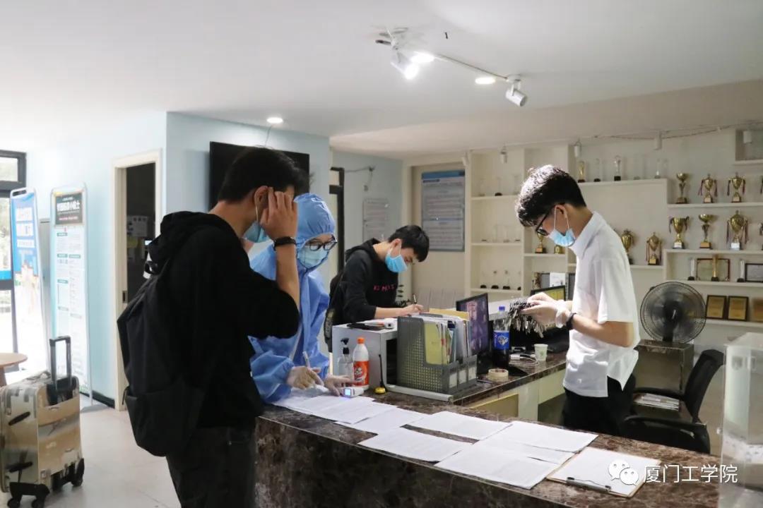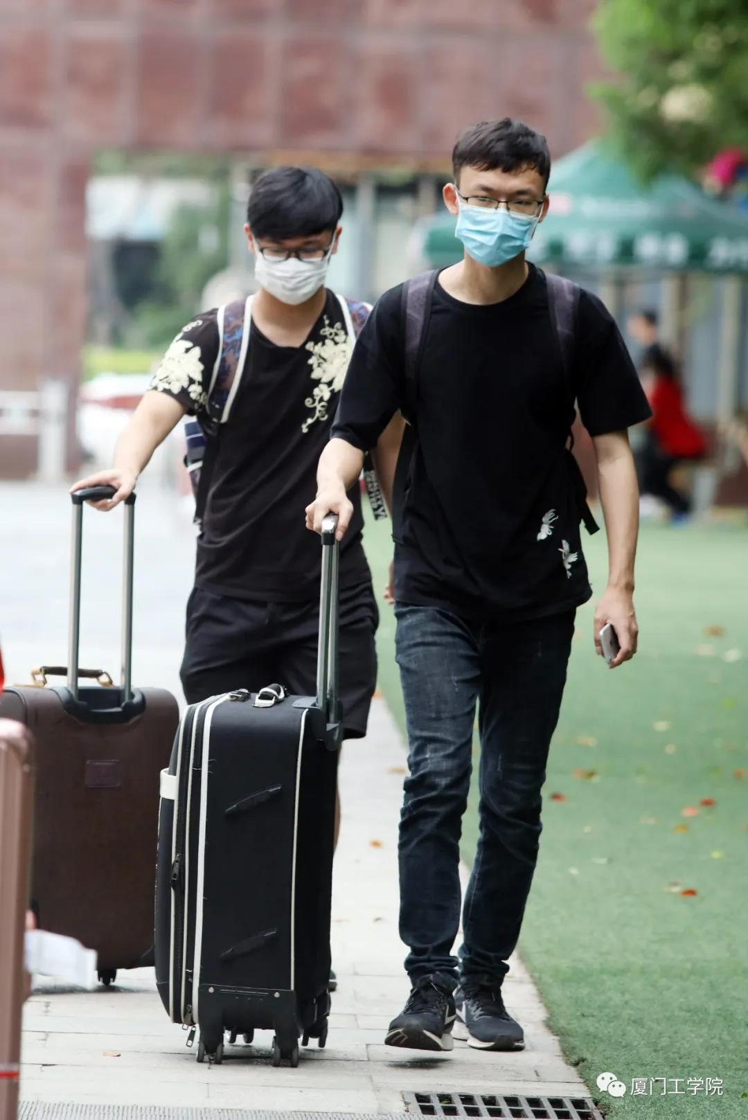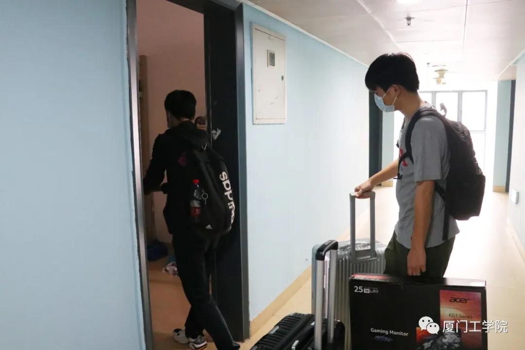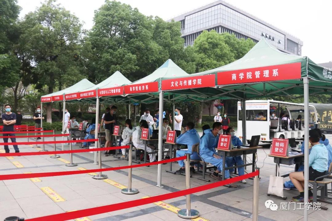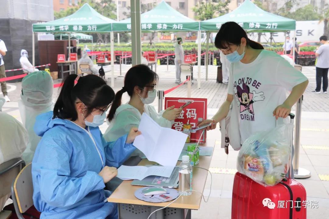 工作人员早早侯在了校门口,指挥车辆,确保交通的流畅,同时承担起协助行李较多的同学搬运行李的工作。经过测温、核验信息后进入校园,是熟悉的“厦工公交”在等候着,由它免费将返校的毕业生送回宿舍。