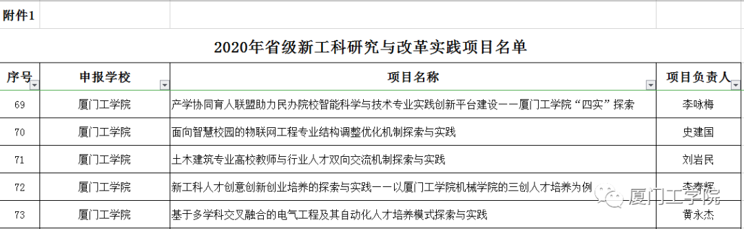 日前,福建省教育厅印发《福建省教育厅关于公布2020年省级新工科、新农科研究与改革实践项目的通知》(闽教高〔2020〕4号),公布2020年省级新工科、新农科研究与改革实践立项建设项目名单。我校共有5个项目获批2020年省级新工科研究与改革实践项目。