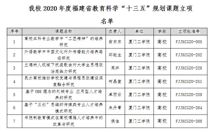 近日,2020年度福建省教育科学“十三五”规划课题立项结果公布,我校有7个项目获批立项。