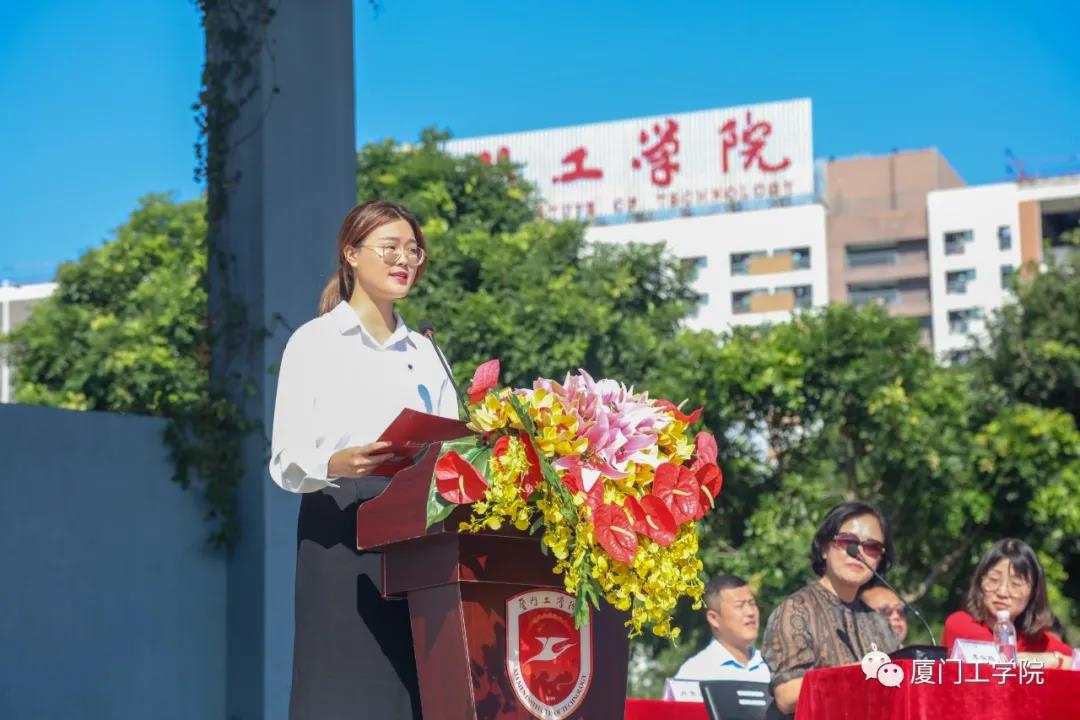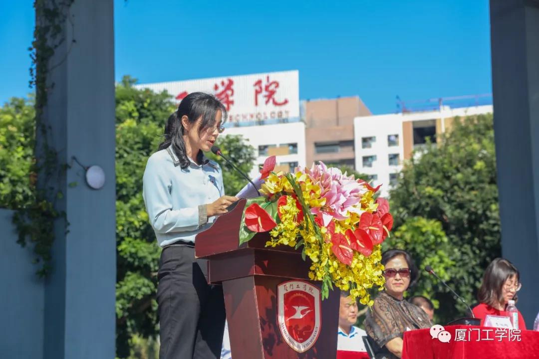 在校学生代表赵雅婷进行了发言,她分享了几点建议、感悟:1.热爱学习,学习好专业知识;根据自己的实际情况制定学习计划、目标;不逃课、不旷课、不挂科,学好每一堂课,完成每一份作业。2.以饱满、昂扬向上的精神状态面对四年大学生活中的各种困难与磨练。3.胸怀天下,敢于担当。把实现个人价值、奉献社会作为不限追求的人生目标。既要仰望星空,又要脚踏实地,做出属于自己的贡献,做一个对社会有用的人。