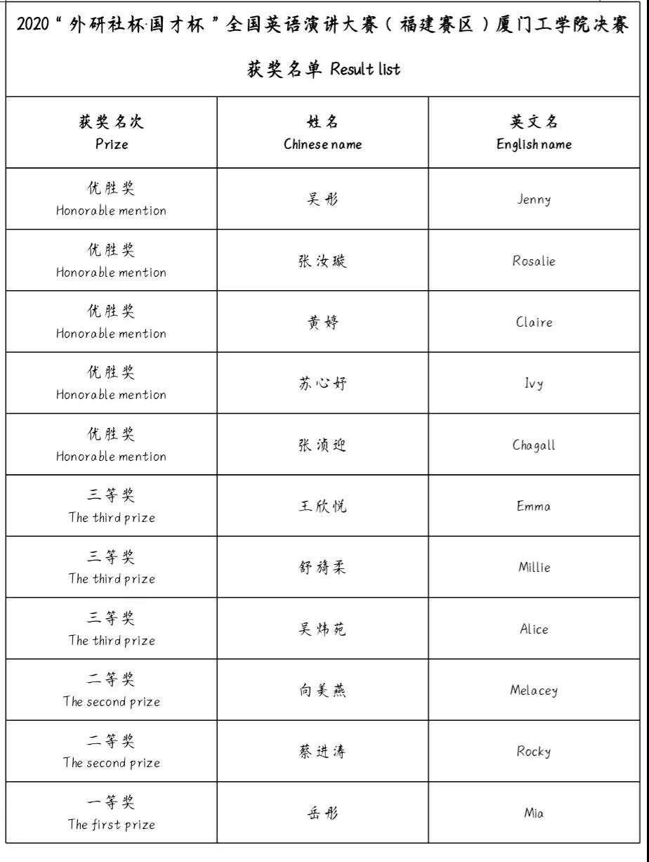 获奖名单