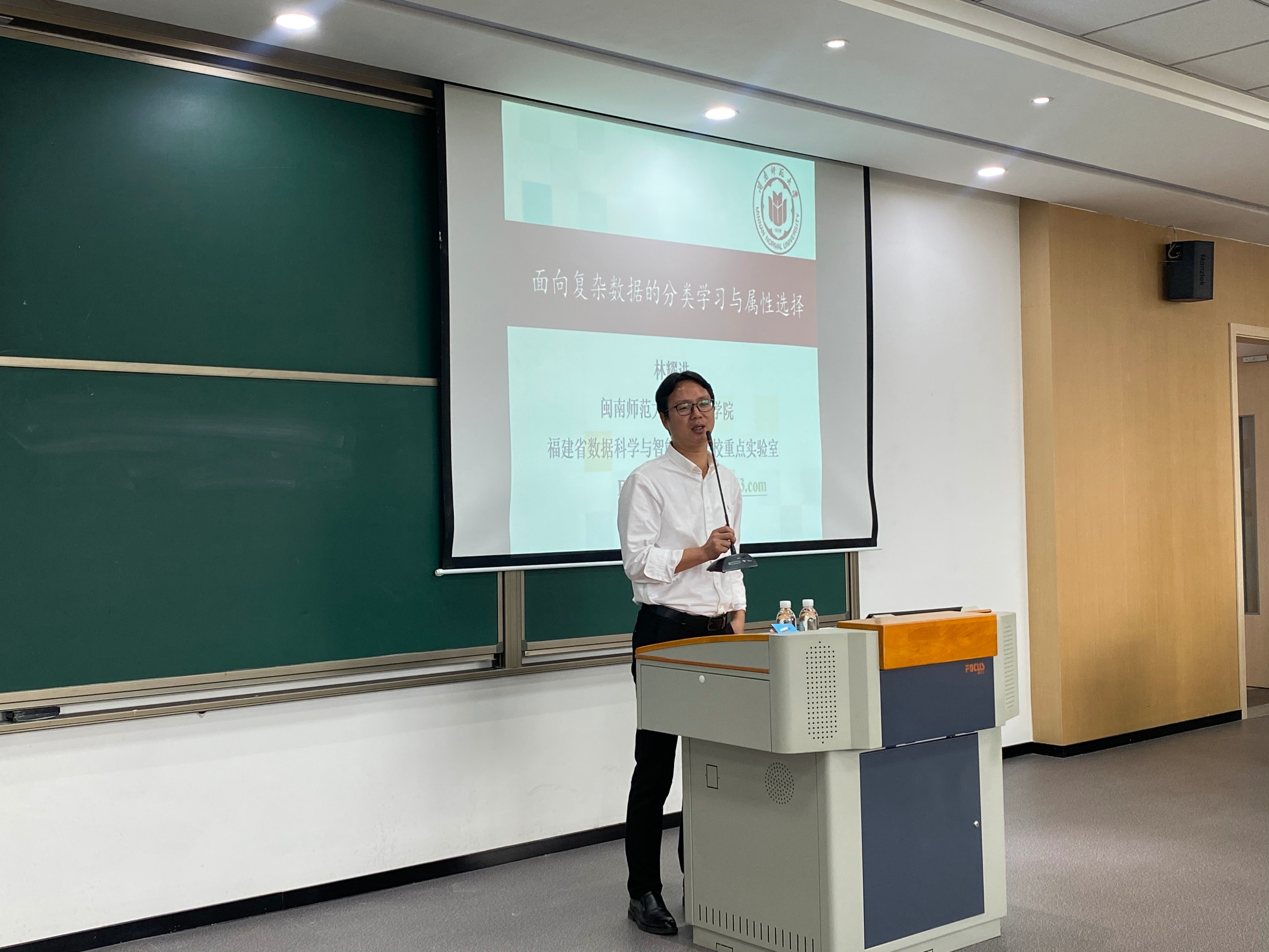 2021年3月30日,我院邀请闽南师范大学计算机学院林耀进教授在教师进修学院(工程坊404)为我院全体教师做《面向复杂数据的分类学习与属性选择》讲座。