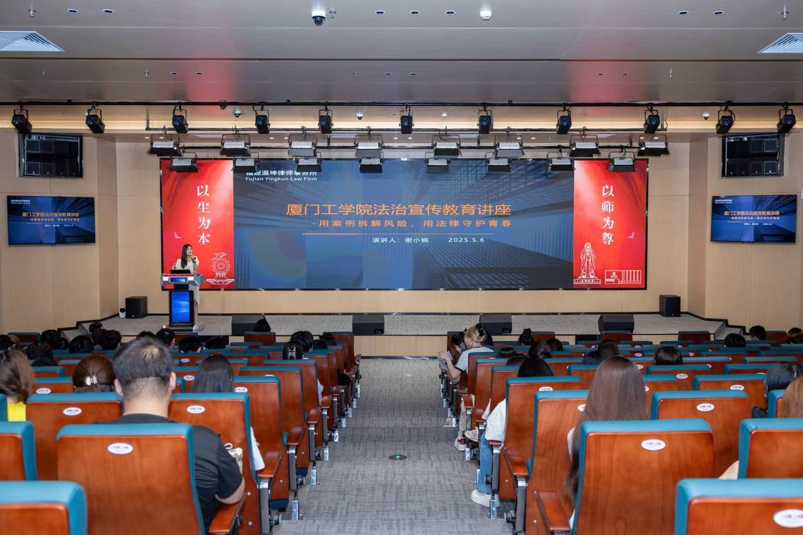 为深入贯彻落实教育部《全国教育系统开展法治宣传教育的第八个五年规划》精神,积极响应“法治中国”建设号召,我校于5月6日下午在立林学术报告厅举办法治宣传教育讲座。本次活动特邀福建瀛坤律师事务所资深律师谢小婉、李真担任主讲,旨在通过普及专业法律知识,提升学生的法治素养。