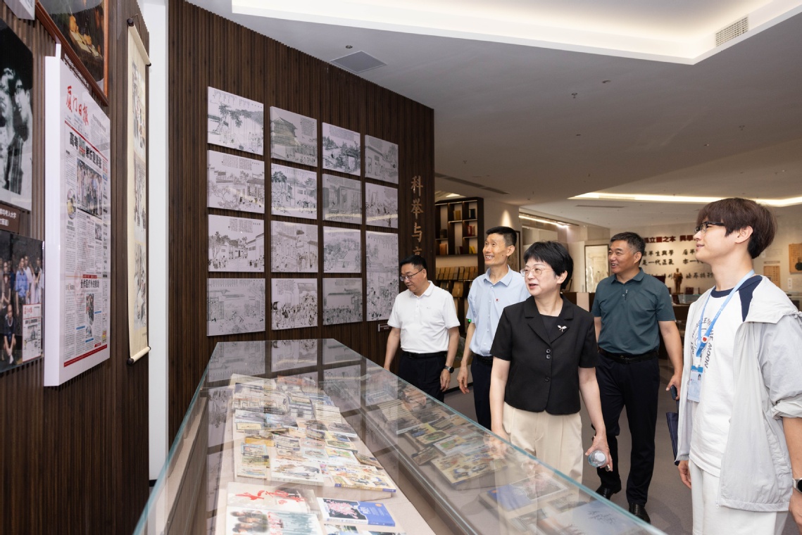 欧阳书记一行参观了学校的学生宿舍、智慧教室、人工智能产业学院、教育博物馆、马拉松博物馆和弘本书馆等场所,与现场师生进行深入交流互动。