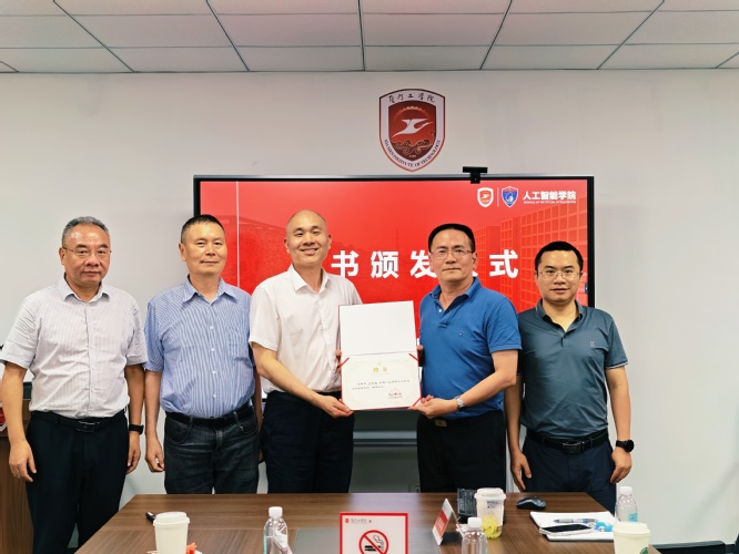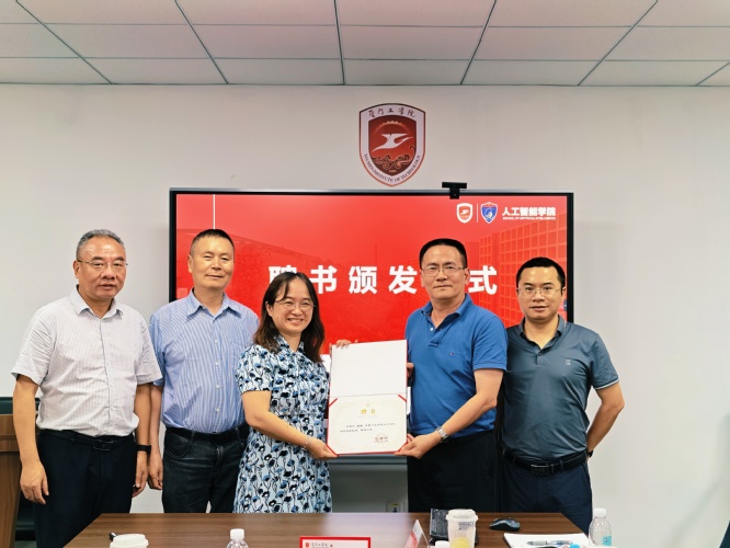 最后,人工智能学院郭躬德院长为企业客座教授颁发聘书、赠予学校校徽,并再次对他们的加入表示热烈欢迎。学院将持续积极推进校企合作与交流,致力于打造功能完善、特色突出的研究生培养基地,确保基地在实践教学设施、技术研发平台、企业导师配备等方面满足研究生教育教学实践能力与教育实践研究能力的培养需求。