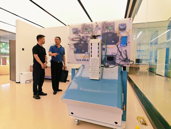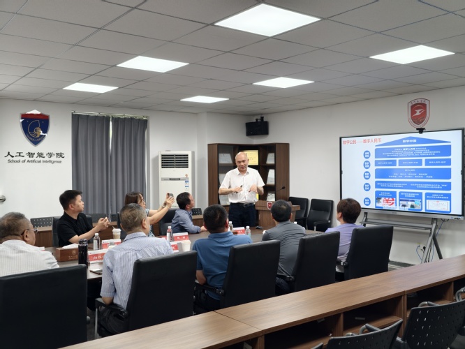 在本次交流会伊始,学院领导与企业代表参观了位于厚德大厦的卓越AI人才培养基地——人工智能产业学院。郭院长阐述了智慧家居、智慧交通、智慧农业、智慧工业、智慧城市、低空数字经济、脑机接口等前沿应用场景,并就硕士研究生联合培养的深度融合模式与成果转化路径、前沿科研项目与丰富实践机会进行了交流与展望。