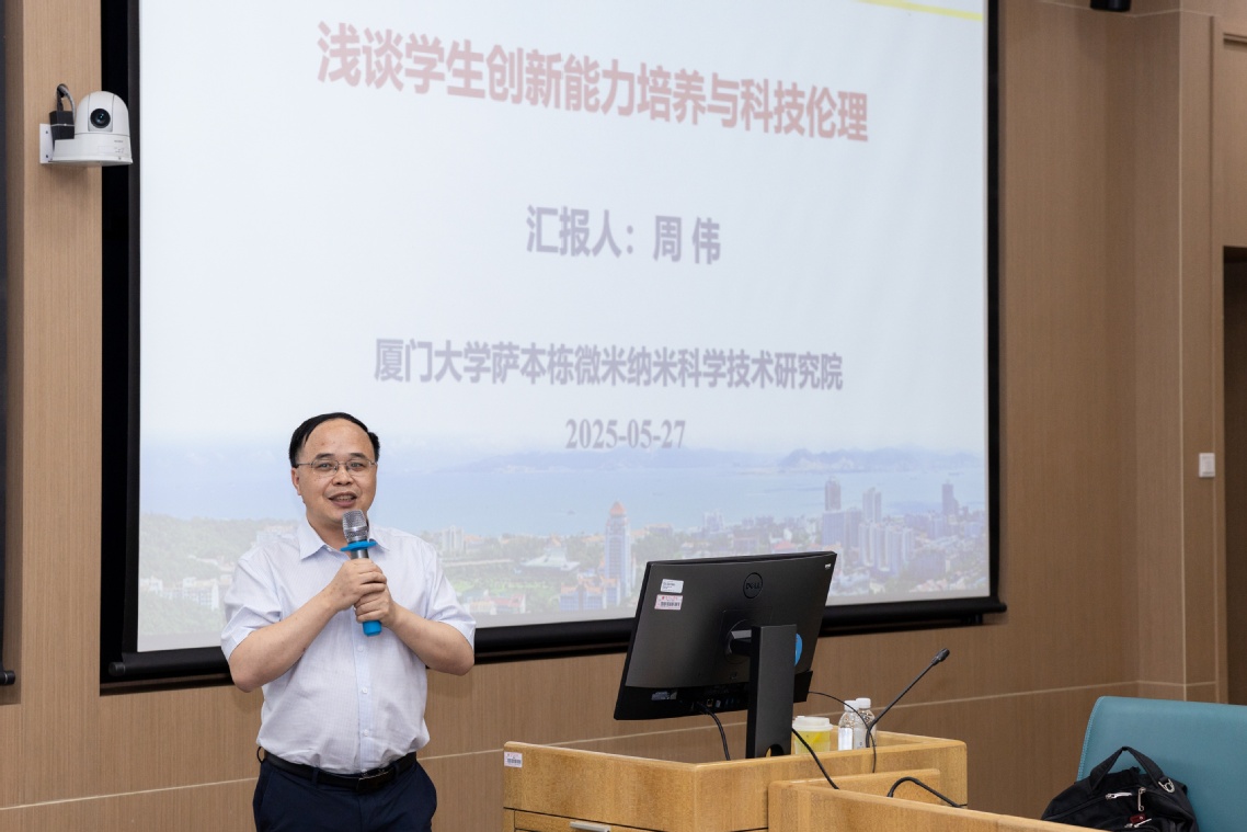 2025年5月27日下午,厦门大学南强特聘教授、国家杰出青年科学基金获得者周伟教授应邀为我校科研骨干作《浅谈学生创新能力培养与科技伦理》专题讲座。本次讲座聚焦新时代科研人才培养体系构建与伦理规范建设两大核心议题,为我校完善科研育人体系提供了重要的理论指导和实践参考。