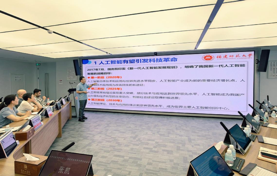 “人工智能技术加速迭代,正迎来爆发式发展。”为进一步抓新机、拓新局,贯彻落实董事会对学校人工智能领域科技创新的工作要求,5月27日,科学与技术研究院人工智能研究院举行人工智能领域科研工作专题学术研讨会。本次研讨会由人工智能研究院副院长王林教授主持,张凯副校长、郭躬德院长以及人工智能研究院全体成员参加了会议。与会人员围绕学校在人工智能领域的科研工作及人工智能研究院的建设发展进行了深入交流探讨。此次研讨会还特邀福建师范大学林铭炜教授作主题报告。