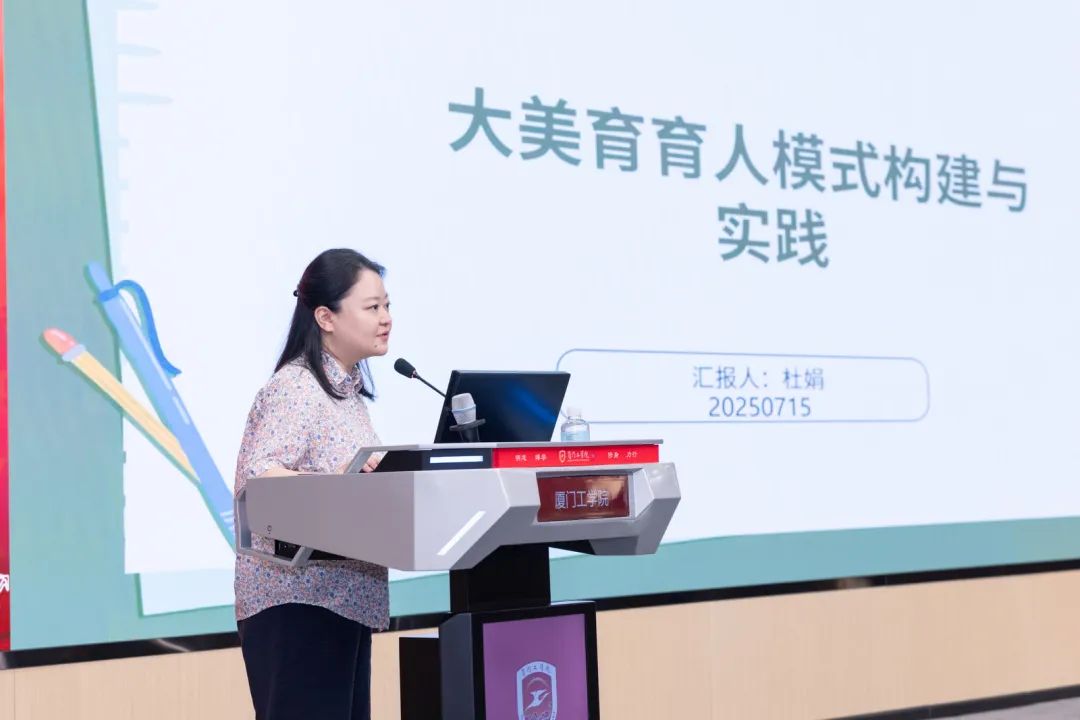 博雅教育与艺术传媒学院杜娟老师详细介绍了美育课程体系建设、美育实践活动规划、通识教育和专业教育的融合建设,并提出“小课堂精讲+大讲座拓展”美育实践探索。通过美育育人成效评估、师资队伍建设和数字化创新应用,构建美育长效发展机制,切实提升学生审美素养与实践能力。