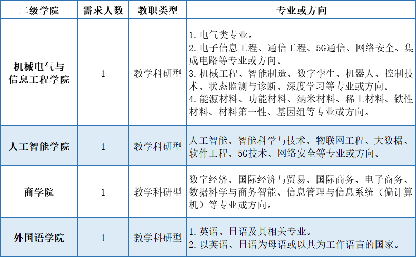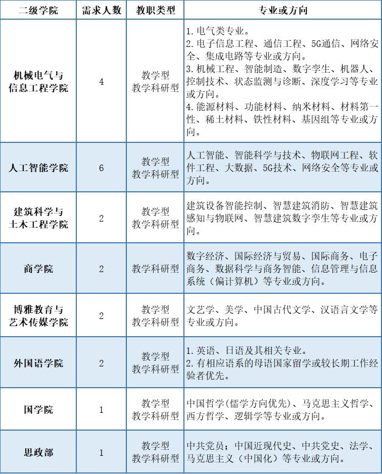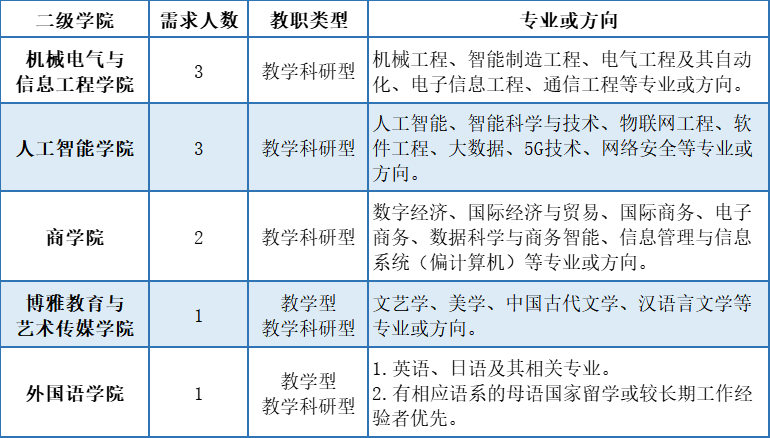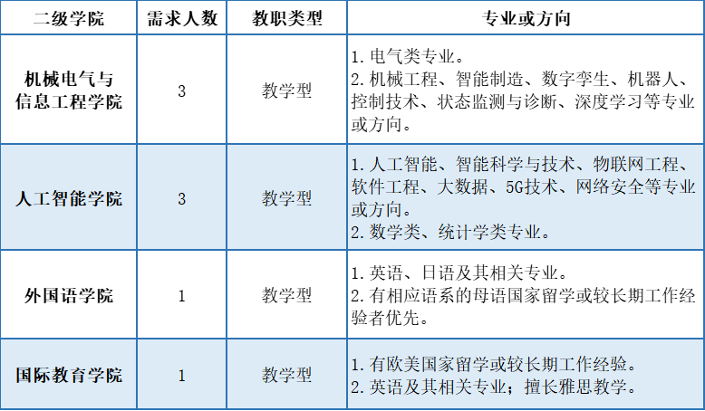10.具有高校教育教学、科研院所、企业行业、部队等工作经验的,具有台港澳、海外留学或访学教育背景的,外籍教师能用中文流畅教学和交流的,均优先考虑。