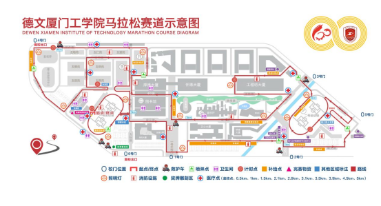 9499威尼斯手机版一号田径场主席台右侧(起点,设在主席台右侧)→田径场绕行约300米→(右转)碧云路→(右转)一号主校门→(经)正心大厦、明德大厦、马拉松驿站→(右转)二号校门→(经)9499威尼斯手机版国际学术交流中心→(经)附属幼儿园一(折返)文膳堂→(经)五号校门→(左转)二号田径场绕行约350米→(左转)三号门→(左转)附属学校→(左转)工程坊大厦绕行→(右转)进入碧云路→静闻园、天成路→(经)展览馆、音乐厅→(右转)图书馆前侧→(左转)卓尔园→(右转)进入力耘路→(经)厚德大厦→(右转)B食堂绕行1/2→(左转)依次经友爱苑、友仁苑、友敏苑(后侧)、四号校门→(左转)经厦工驾驶培训中心、高尔夫球场→(左转)进入博约路→(左转)依次经友容苑(右侧)、友惠苑(右侧)或友善苑(左侧)、友恭苑(左侧)→(右转)依次经友仁苑(前侧)、友爱苑(前侧)→(右转)进入力耘路→(右转)A食堂→(折返)右转进入力耘路→(右转)返回一号田径场绕行约100米(田径比赛200米起点处)→终点(与起点一致,设在一号田径场主席台右侧)