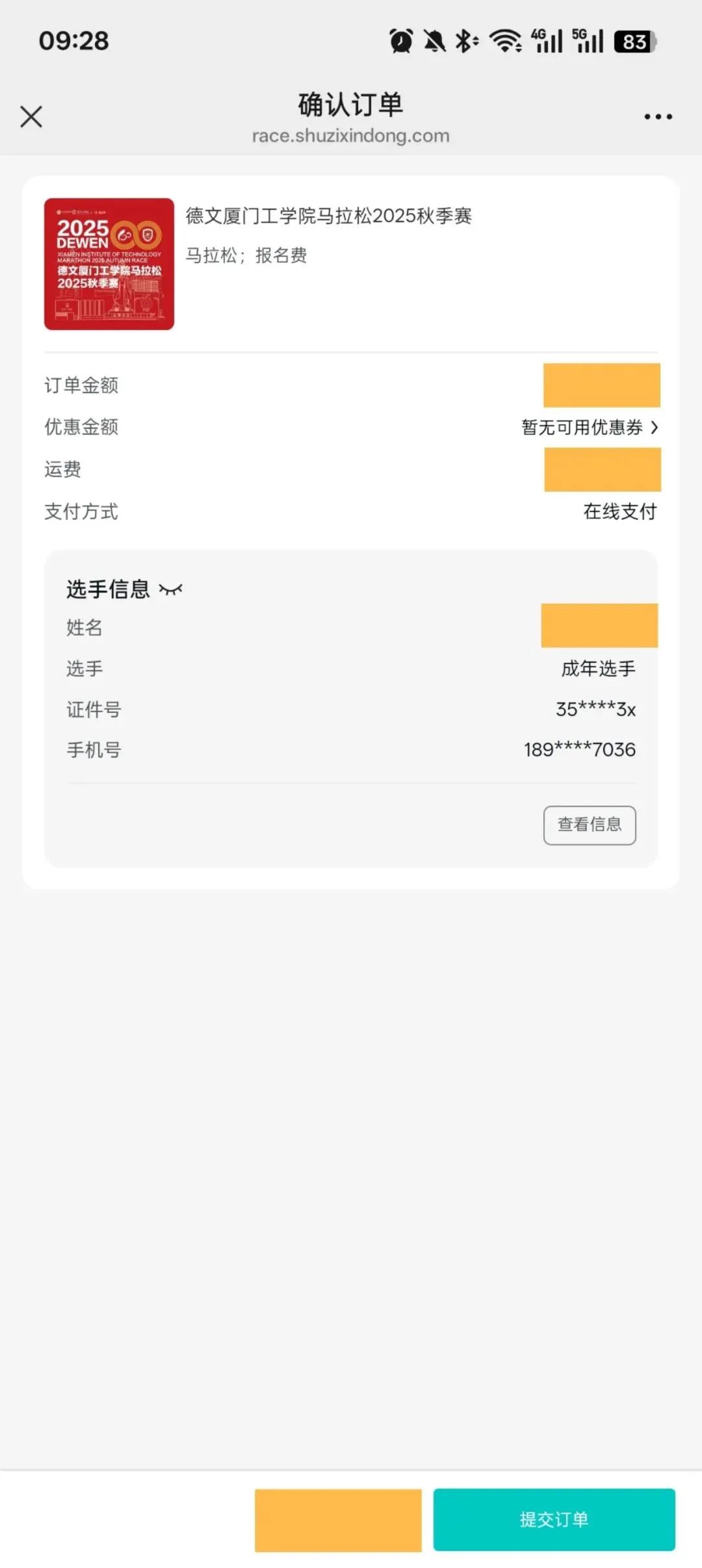 提交报名订单后就报名成功啦