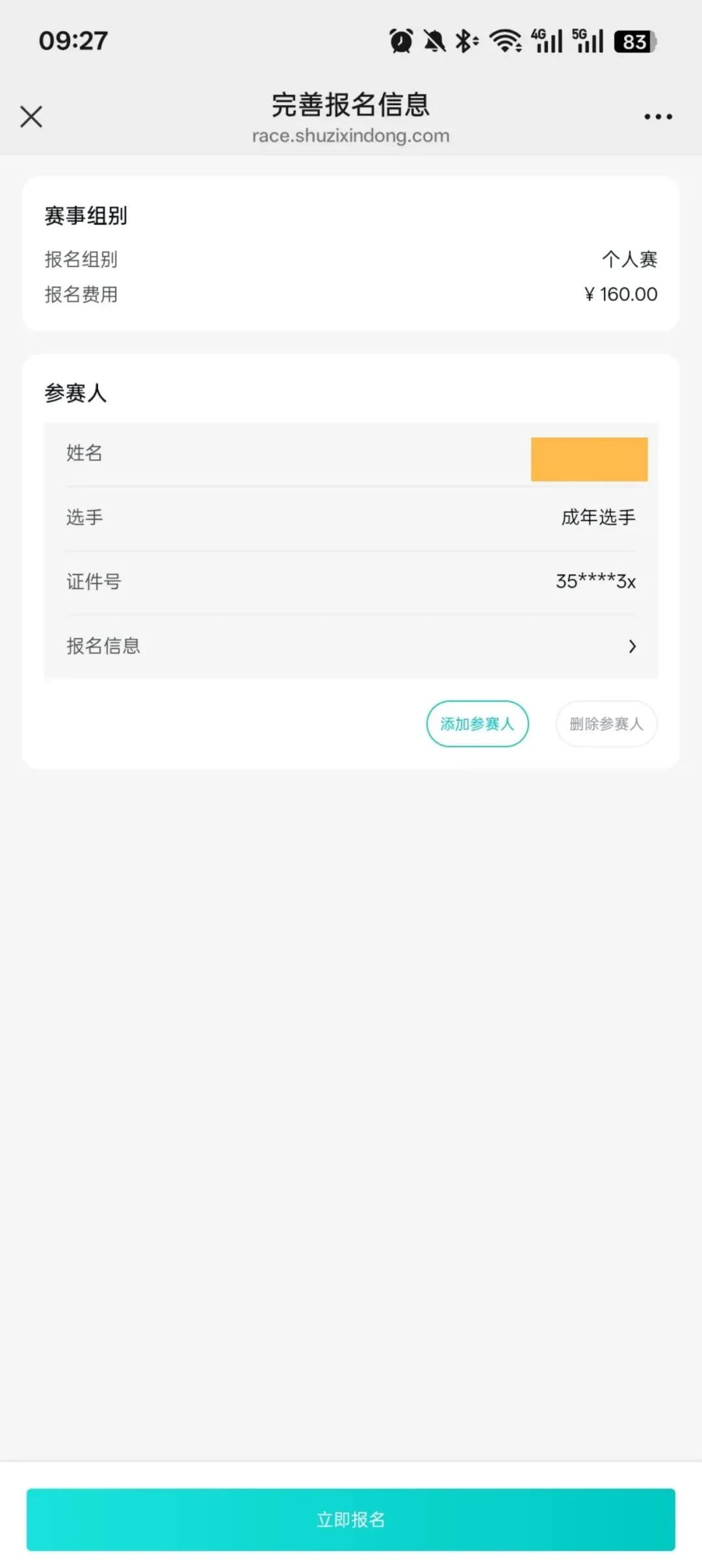 填写参赛人的详细信息后