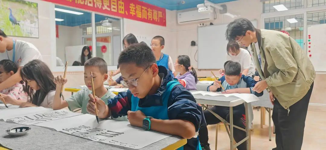 此外,23级软件工程6班邹明桦、23智能制造工程2班聂起文和23级国际经济与贸易2班郭子杰三位同学主动对外沟通,积极联动墨香书协、汉服社等学校其他社团,促成联合义教活动。在众人齐心协力的推动下,学习模式从单调的独奏变成了多元交织的精彩合奏,绽放出全新的活力与光彩。