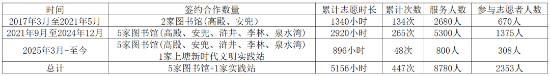 自2017年至今,厦工青协研学部已走过8年义教征程。从最初的8人小队起步,不断发展壮大。截至目前,累计参与义教活动的志愿者人数达到2353人,累计在义教中陪伴小朋友8780人,合作的图书馆数量也从最初的两家到如今5家图书馆和1家新时代文明实践站。