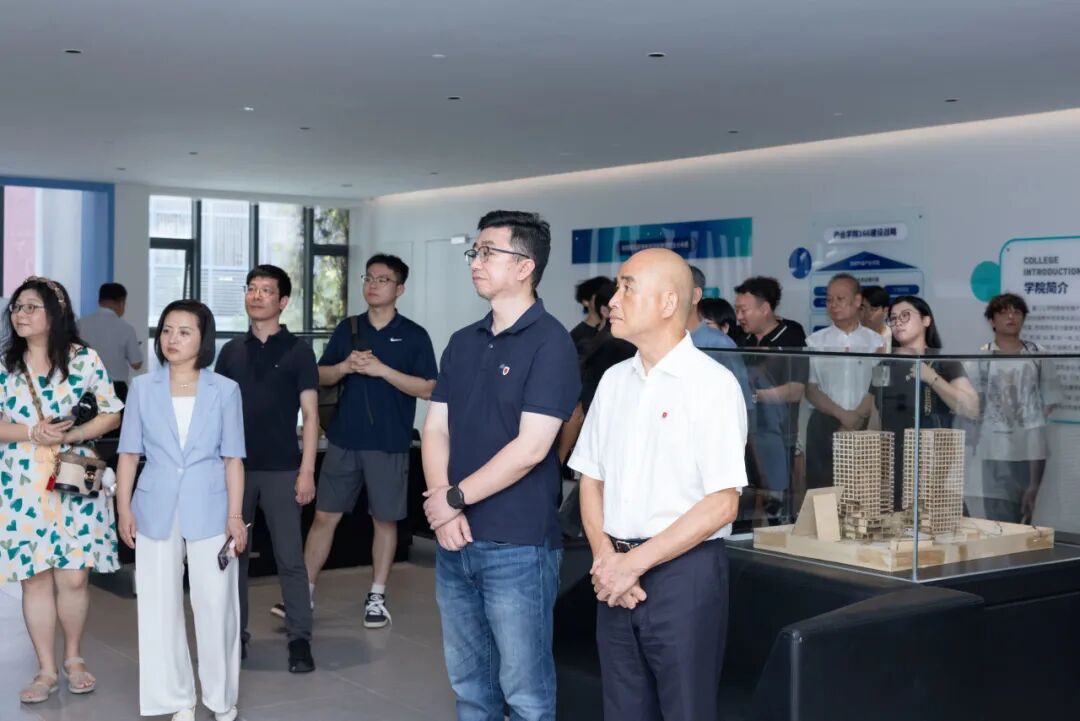揭牌仪式后,与会领导嘉宾共同参观了数智传媒产业学院。学院内先进的智能设备、模拟真实场景的直播空间、完善的教学配套设施,让大家对产业学院的教学与实践能力有了更直观的认识,也对未来人才培养成果充满期待。