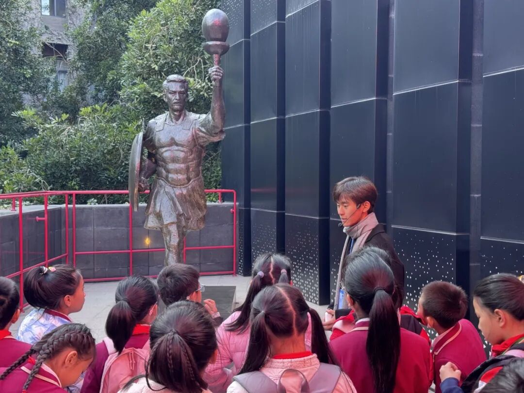 郭昊文刚加入讲解团时,只了解学校馆园的基础内容,随着场馆增多、内容更新,需要不停去新场馆学习新内容。最让他难忘的,是与伙伴们一起学习讲解教育博物馆的经历——培训中苏涵校长为参训全员解读教育博物馆背后的故事,所有人紧握笔记本记录细节。那一刻,郭昊文读懂了“敬畏历史、真诚待访”的意义,也想把这份初心传递给每一位新成员,张辰凯便是其中之一。