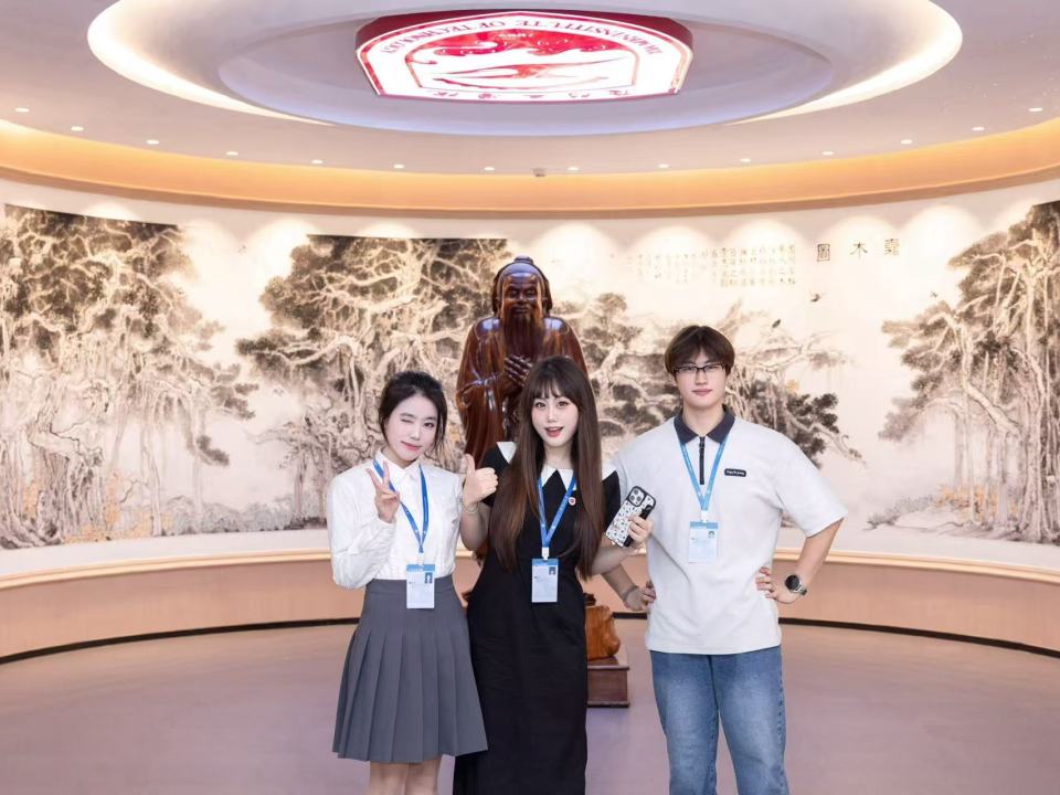 最初讲解时,她紧张到声音发颤,对校园文化一知半解。如今,她能从容应对各类访客,向中外来宾细说厦工故事,更能将商务英语的跨文化理论,转化为与不同国籍访客的心灵对话。某次带领新入职老师们参观校园,用英语与外教畅谈校园文化的瞬间,让她真切体会到了专业与实践融合的力量。老师的指导、伙伴的陪伴、访客的夸奖,共同熔铸成她面对未来的底气,也让她明白:成长从不是孤军奋战,而是在集体温暖中突破自我。