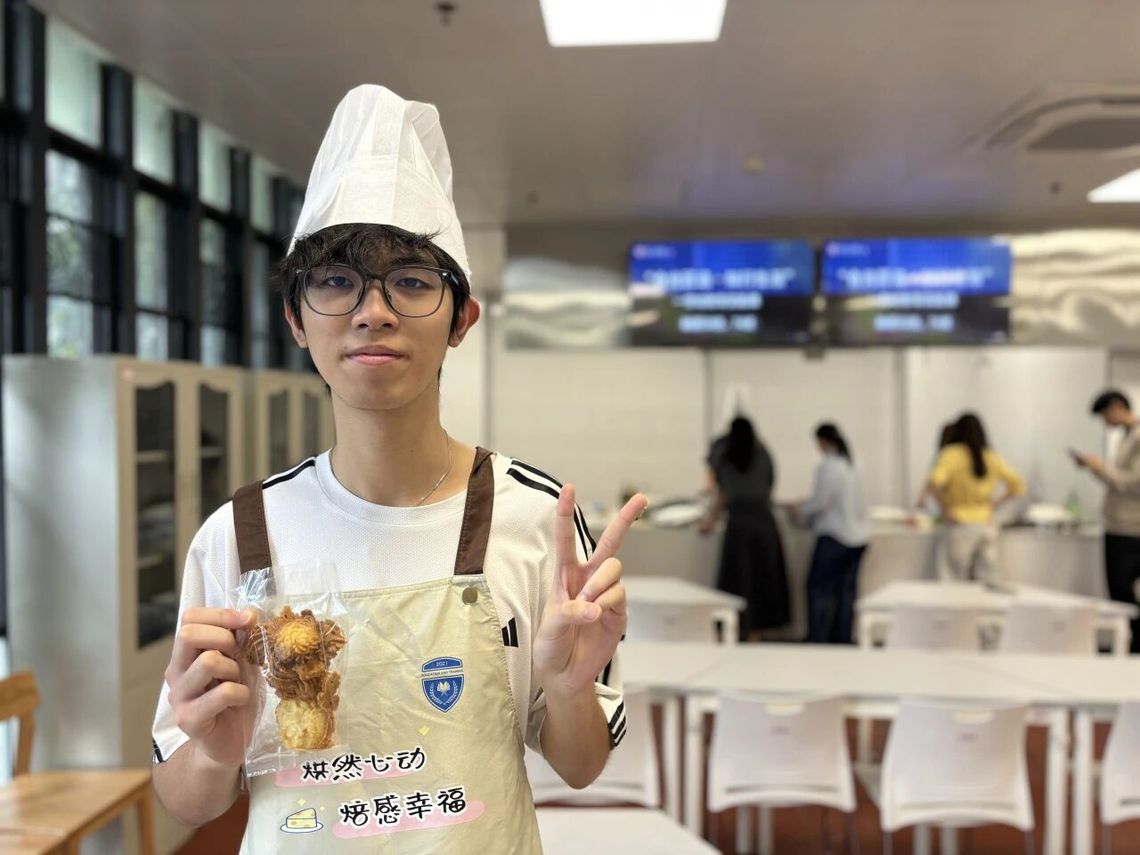 “我做的第一块曲奇,想送给我的辅导员老师。”融新学院23班的陈鑫举起手中精心装饰的饼干,眼中闪着光,“感谢老师开学以来的照顾,劳动也是表达感恩的方式。”