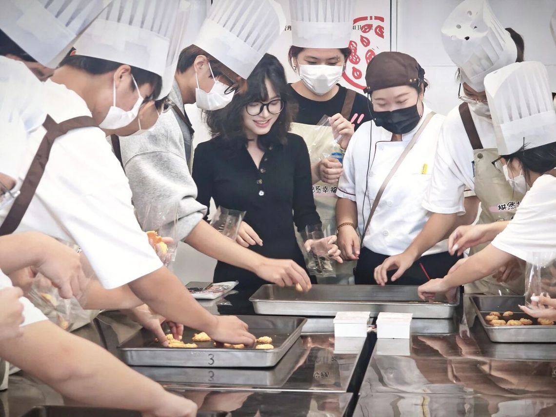 西点烘焙主讲老师:“称量、搅拌、烘烤……烘焙教会我们的不只是制作甜点,更是一份对细节的专注、对过程的耐心和对创造的热爱。当你们看到亲手制作的曲奇在烤箱中焕发金黄,我希望你们也能看到自己身上正在发光的无限潜力。”