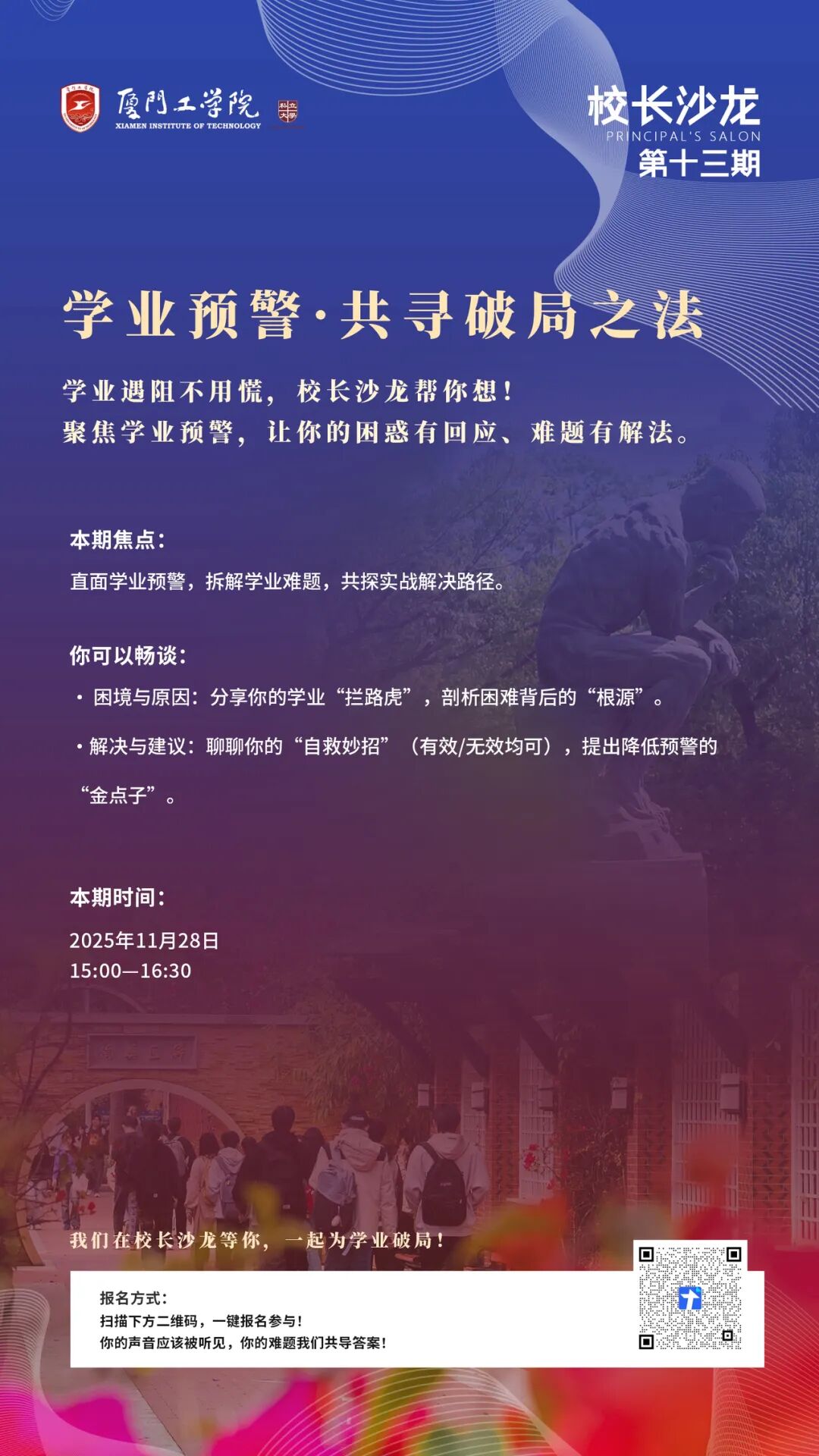 学业遇阻不用慌,校长沙龙帮你想!聚焦学业预警,让你的困惑有回应、难题有解法。